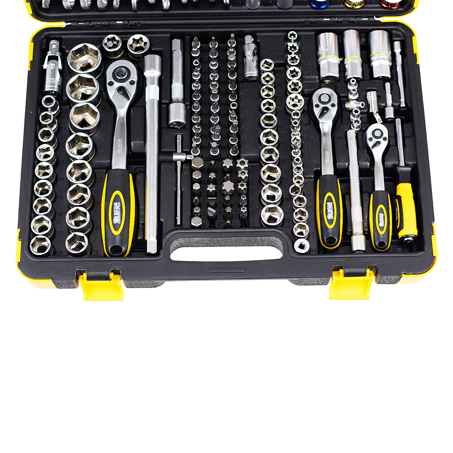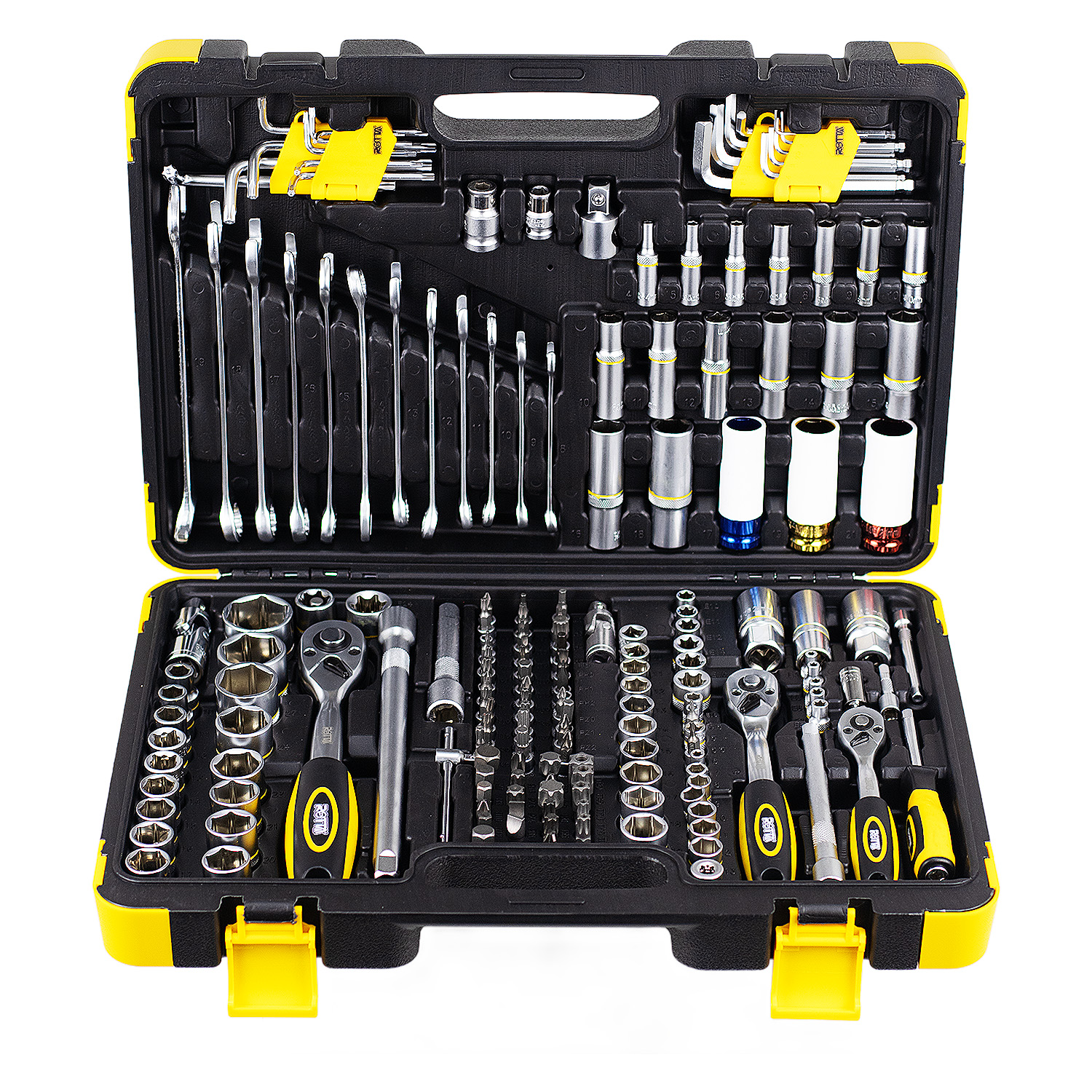 Com encaixes 1/4″, 3/8″ e 1/2″, o conjunto atende desde serviços leves até trabalhos mais robustos em oficinas mecânicas, manutenção industrial e uso automotivo.