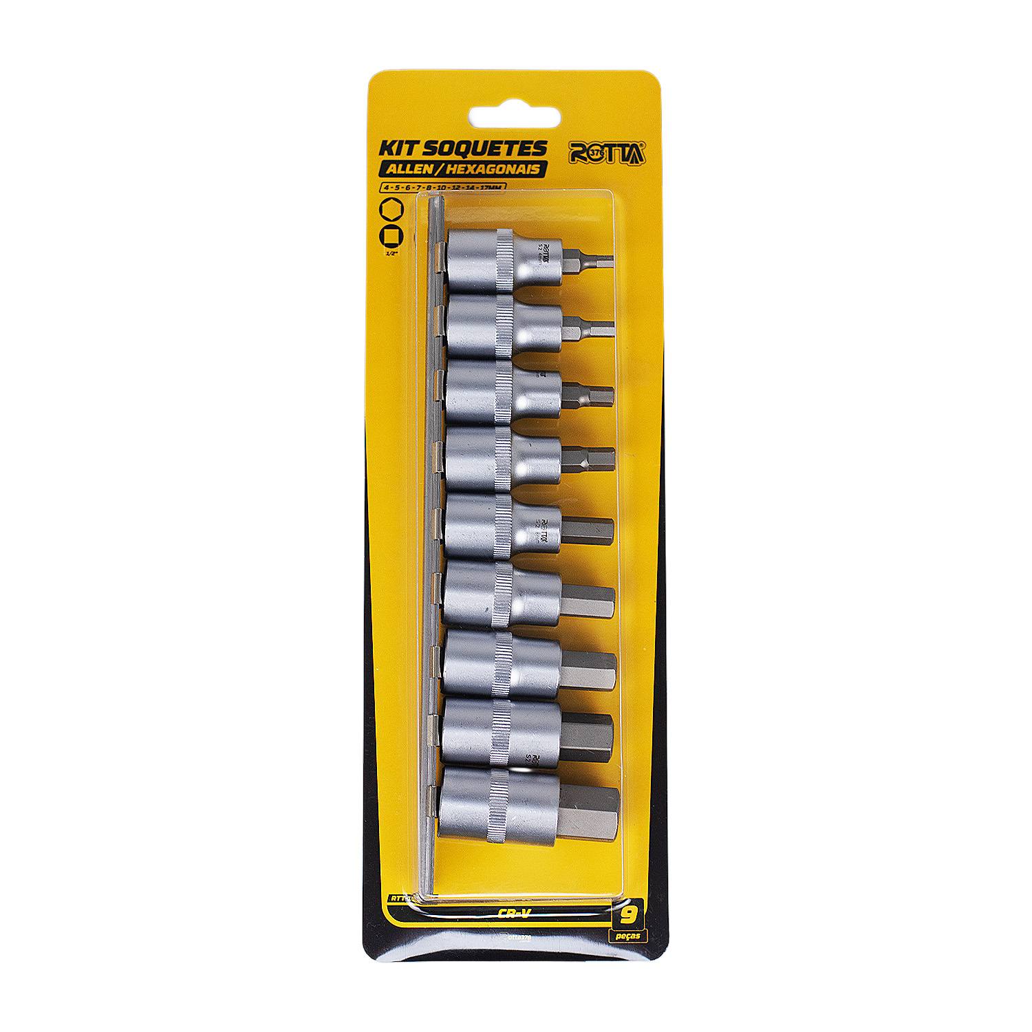 9 soquetes hexagonais internos nos tamanhos: