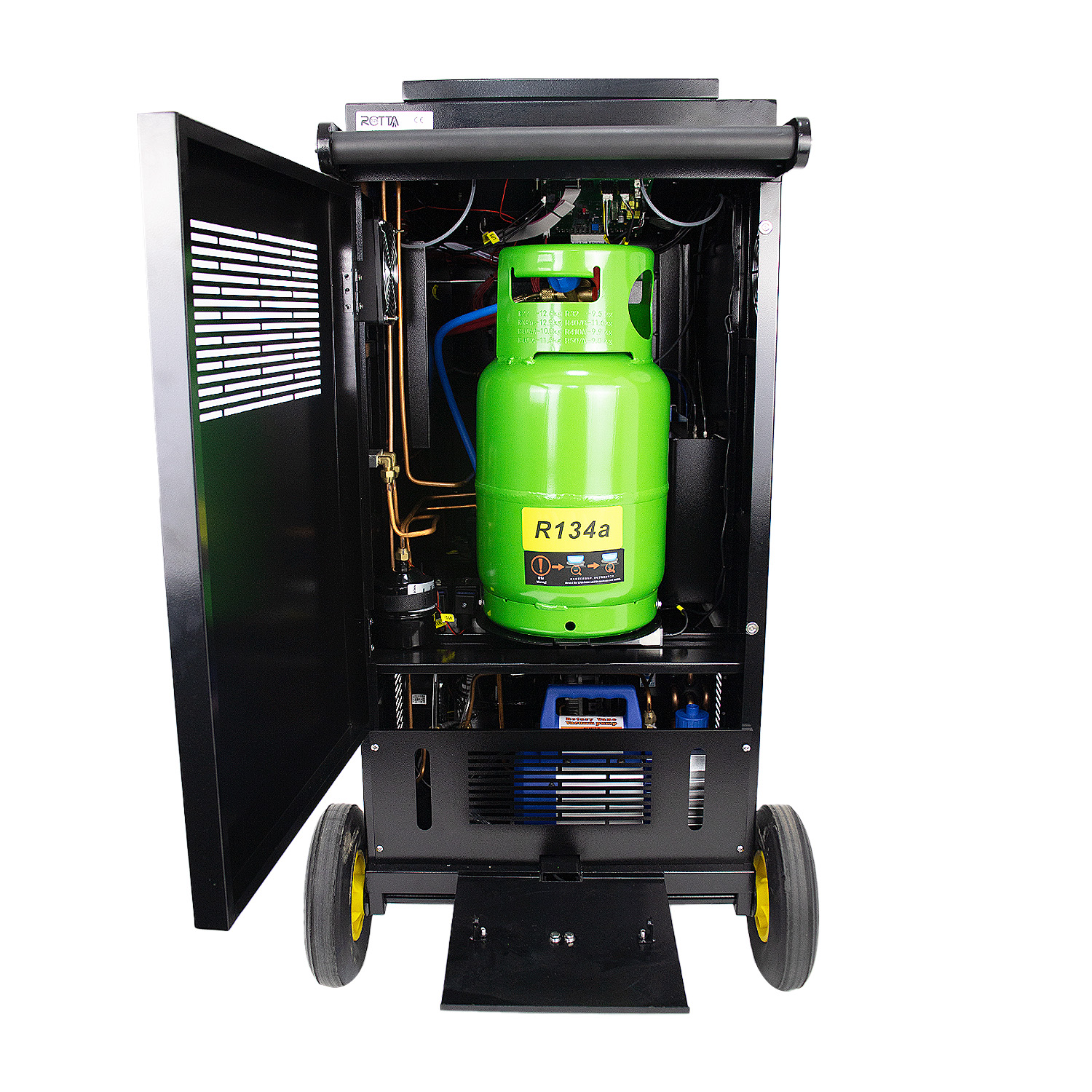 Compatível com os refrigerantes R134a e R1234yf, o equipamento reúne em um único sistema as funções de lavagem, recuperação, reciclagem, aspiração, recarga e injeção de óleo, proporcionando manutenção segura, automatizada e de alto desempenho.